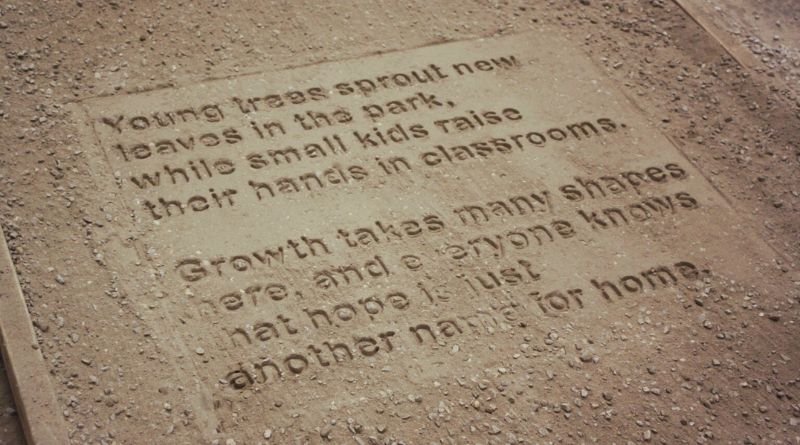 Through the project, poems will be stamped into freshly poured sidewalks all across town using an accessible, new, Dallas-centric poetry form invented by Dallas Poet Laureate Mag Gabbert, called the “2-1-Form.” Each featured installation location will be chosen with a focus on equity and inclusion, and with the intention of addressing and healing past instances of harmful erasure.