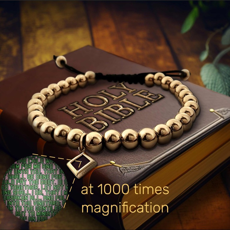 Innovative high-tech jewelry now available, containing engravings of all 27 books of the Bible.