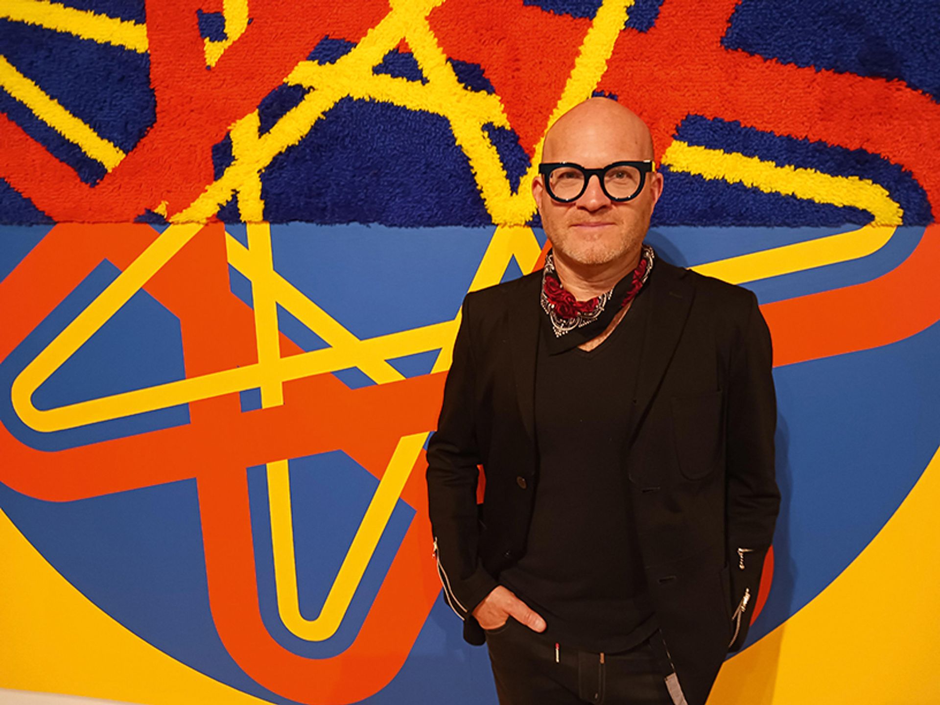 museum director Adam Lerner with Untitled (1388) (1988) by Jim Isermann Scarlet Cheng