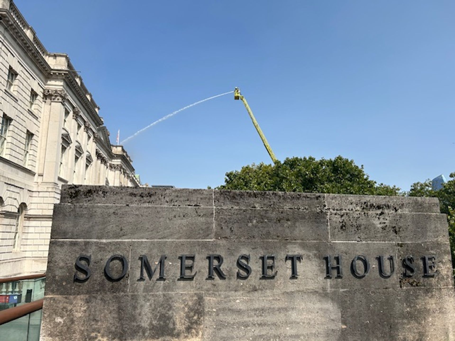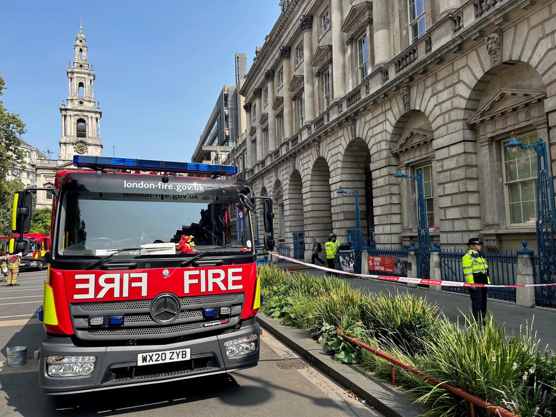 Somerset House posted on X earlier today: “All staff and public are safe and the site is closed. The London Fire Brigade arrived swiftly and we’re working very closely with them to control the spread of the fire.”