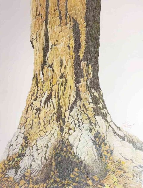 My attention was first held by the palette of “Avatars of the Tortoise” (which I learned was a collective title of at least seven paintings done in the mid 1990s). Looking at his paintings prompted me to ask him about his palette and his predilection for muted, closely valued colors. Baker told me that these were guided by his color blindness to certain shades of red and green. Whatever Baker’s reason for the colors he uses in his paintings, it further set his work apart from other contemporary artists.