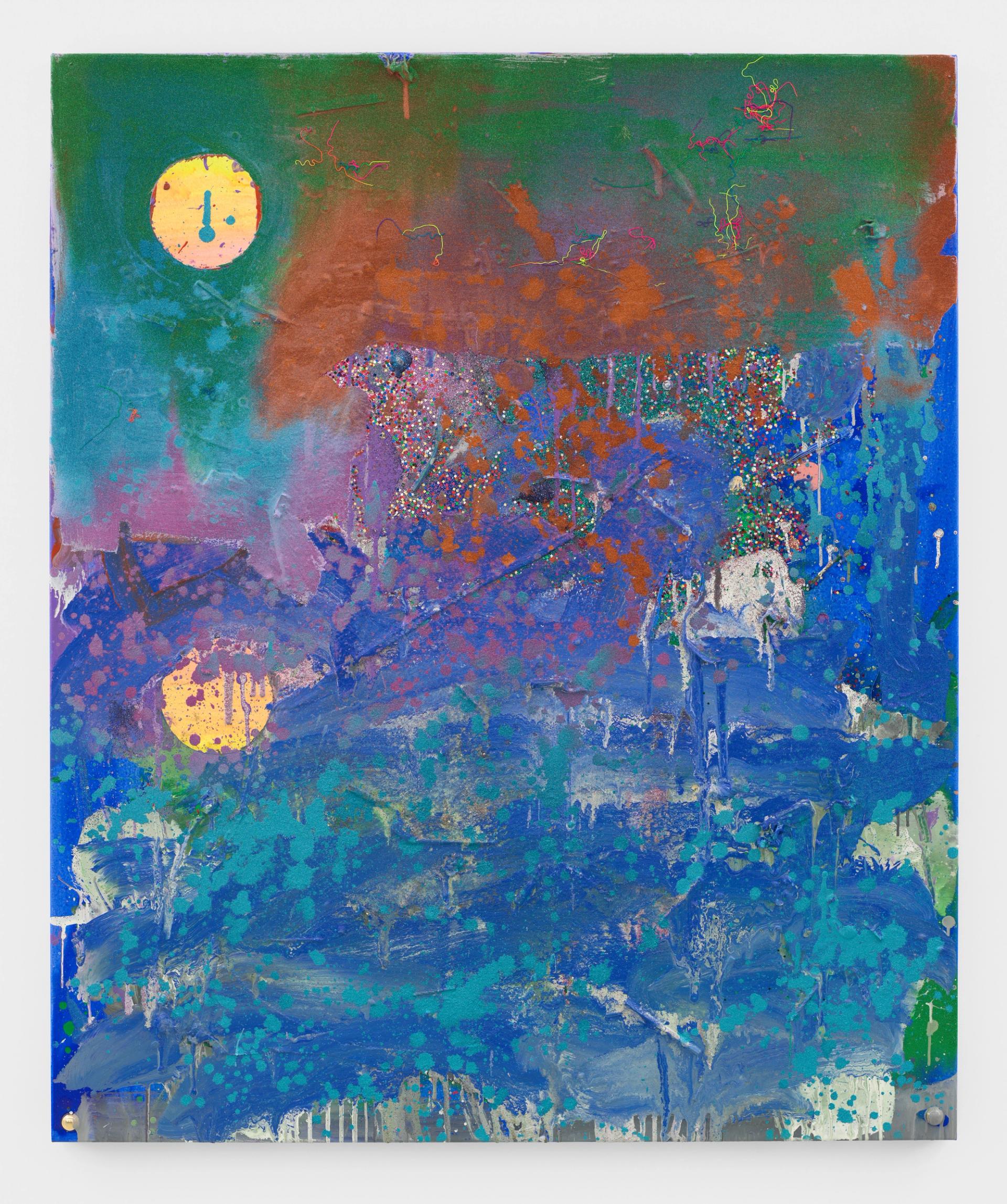 In Paley’s Studio M in the Rochelle school she is showing Cuando el depredador está lejos, los pájaros cantan (When the predator is far away, the birds sing), a new series of painted dreamlike landscapes and celestial bodies by the Colombian born, Berlin-based artist Daniel Correa Mejia.