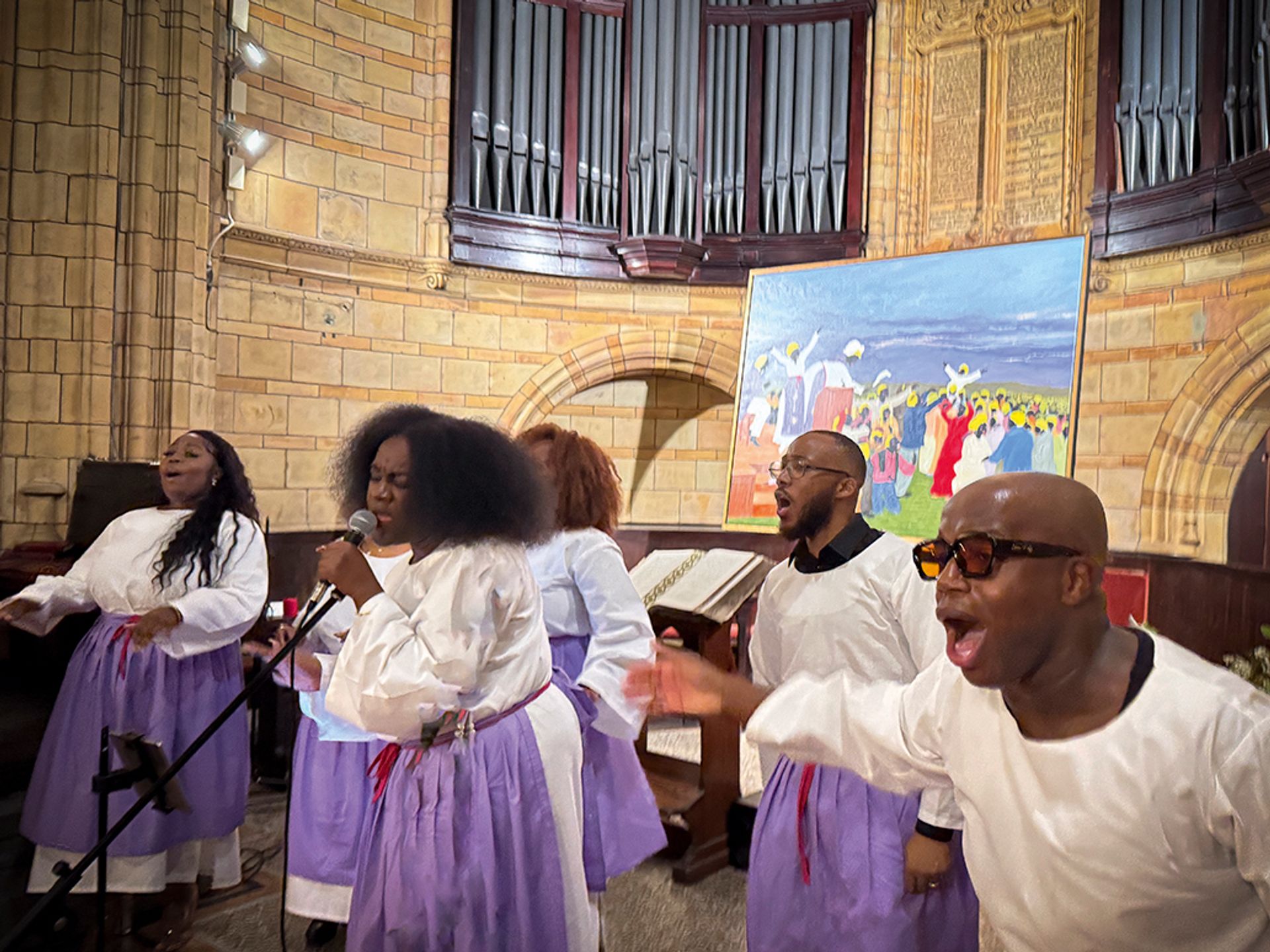 Sound and vision: London Community Gospel Choir offered up a programme of songs to accompany Kwesi Botchway’s paintings Courtesy Gallery 1957