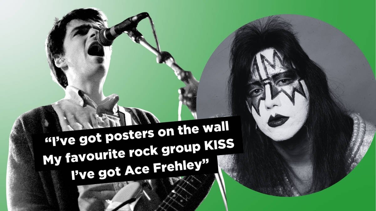 “I’ve got posters on the wall / My favorite rock group KISS / I’ve got Ace Frehley, I’ve got Peter Criss / Waiting there for me.”
