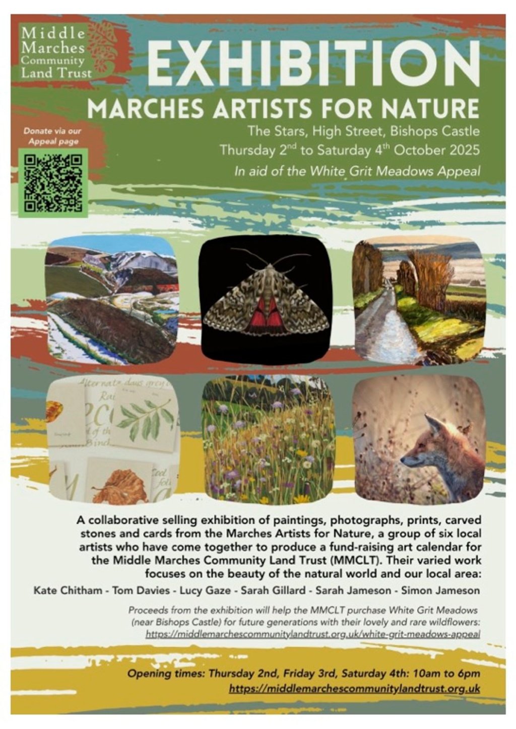 The exhibition will help raise funds for the Middle Marches Community Land Trust’s White Grit Meadows Appeal, to purchase five acres of botanically-rich wildflower meadows, in a stunning location, beneath Corndon Hill.
