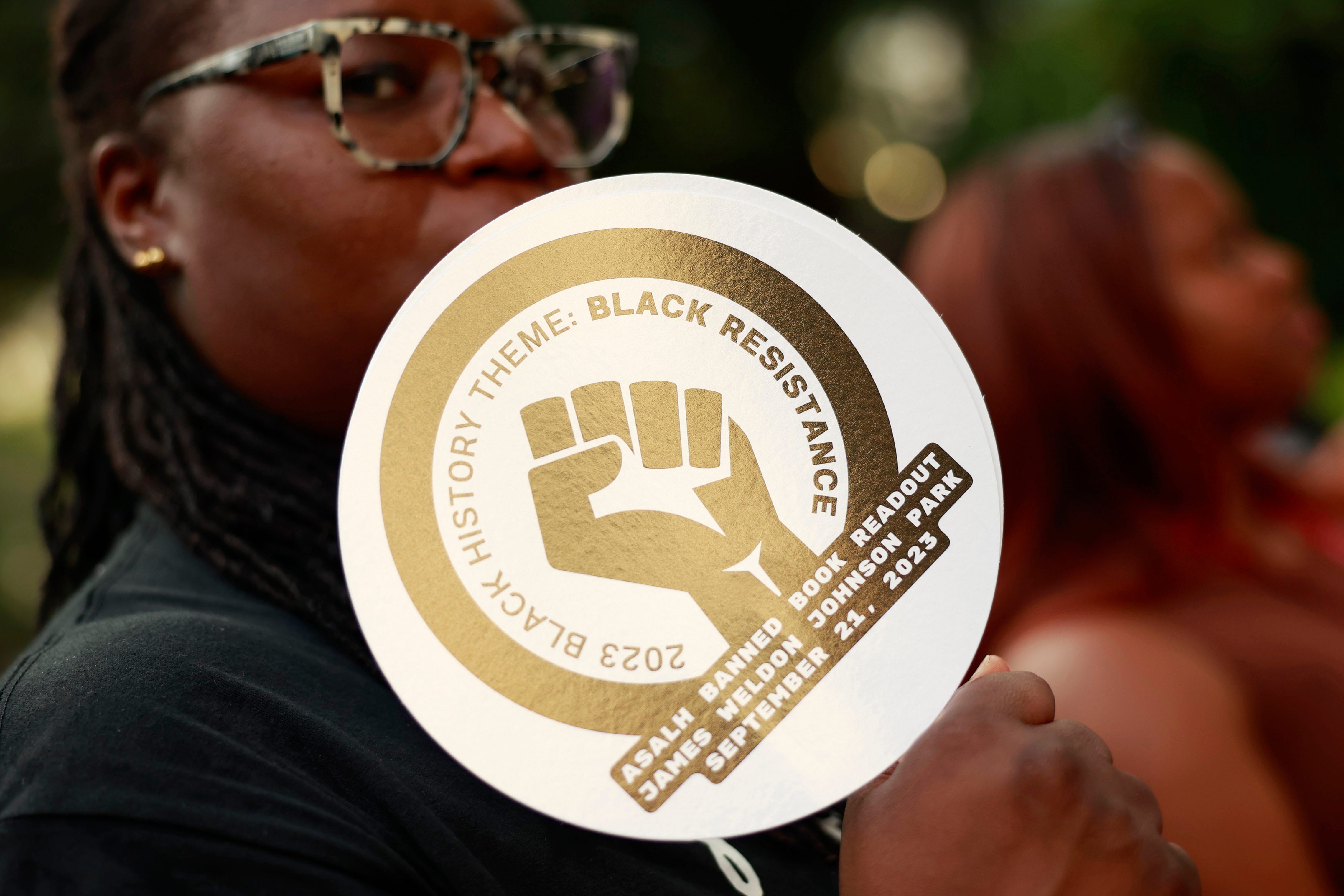 Excerpts from the 1619 Project are recited during the ASALH “Banned Book Readout” at James Weldon Johnson Park in Jacksonville, Fla.