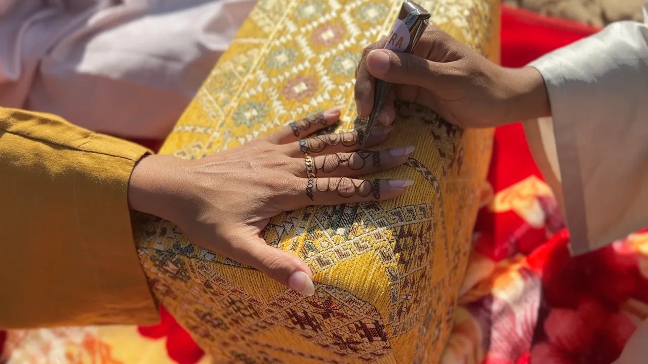 Azra smiles modestly through the screen, insisting she had no intention of leading this new charge of henna that everyone credits her for. It all started serendipitously when she was at a friend’s wedding a few years ago and was scrolling through Instagram, looking for simple designs that a novice like her could easily sketch on her hand. “I couldn’t find anything so I decided to do a traditional circle and paint my fingertips,” she recalls.