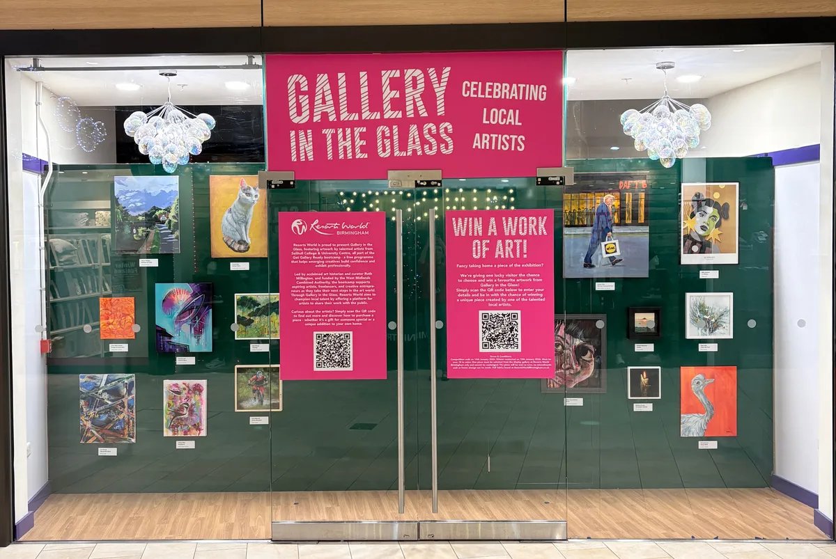 Led by acclaimed art historian and curator Ruth Millington, and funded by the West Midlands Combined Authority, the college bootcamp supports aspiring artists, freelancers, and creative entrepreneurs as they take their next steps in the art world. Through Gallery in the Glass, Resorts World is championing local talent, offering a space for artists to share their work with the public.