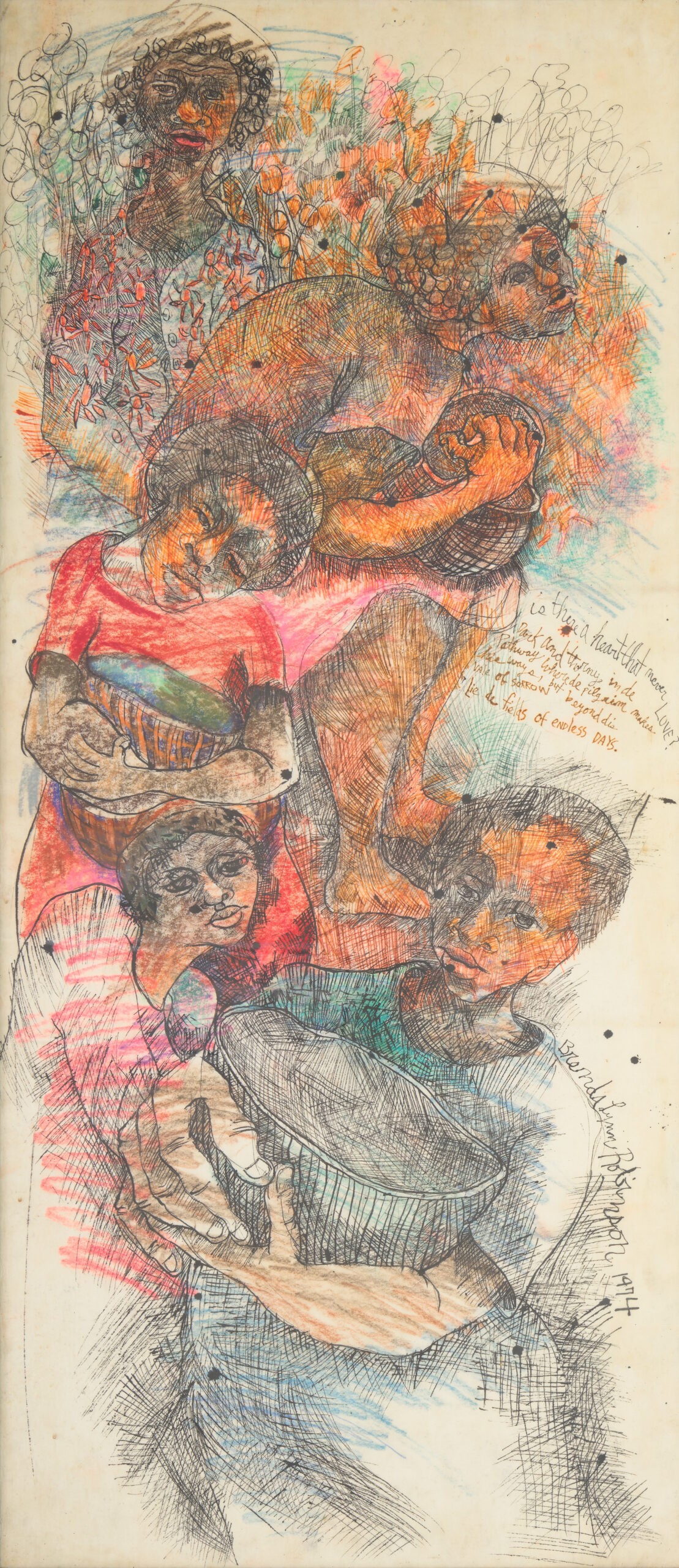 AMINAH BRENDA LYNN ROBINSON, “Fields of Endless Days,” 1974 (pen, ink, pastel, and colored pencil, on paper, 57 x 26 inches). | © Aminah Brenda Lynn Robinson Trust. Courtesy of the Aminah Brenda Lynn Robinson Trust, Columbus Museum of Art, and Fort Gansevoort, New York