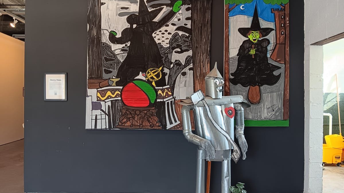 Nature and still-life works by John Gillam were on view in a corridor. Henry Hess’ paintings and life-sized figures are based on characters from classic children’s films and literature. In another gallery is a large scale — and scaley — dragon’s head popped out from a wall. Limes Design Studio and Gallery held an essay contest based on a painting.