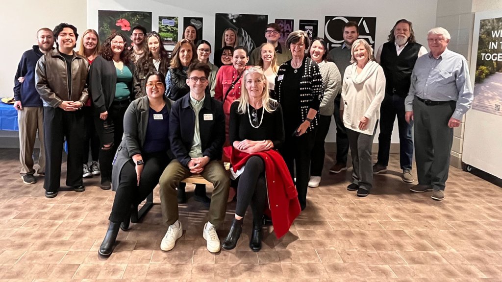 Daniel Lorentz, a senior from Winder, Georgia, pursuing a degree in art with a concentration in graphic design, served on one of the teams creating the art and helped set up the gallery for a Jan. 29 reception as a visual arts intern.